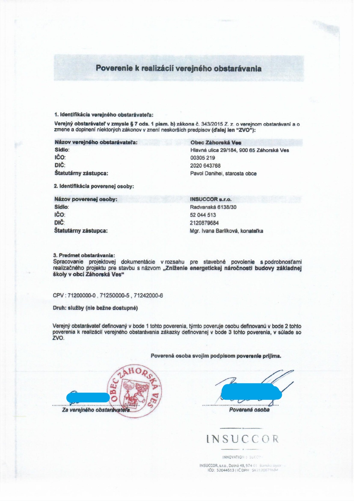 cenová ponuka a poverenie na vykonanie verejného obstarávania