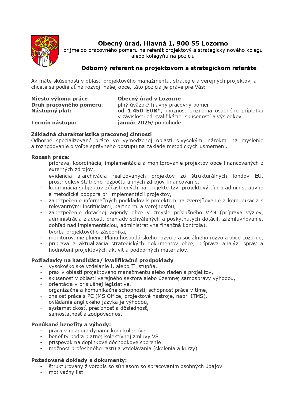 Mimochodom, zhruba v rovnakom čase, ako sa u nás dohadovala prvá zmluva s firmou INSUCCOR s.r.o., hľadali v Lozorne projektového manažéra.
