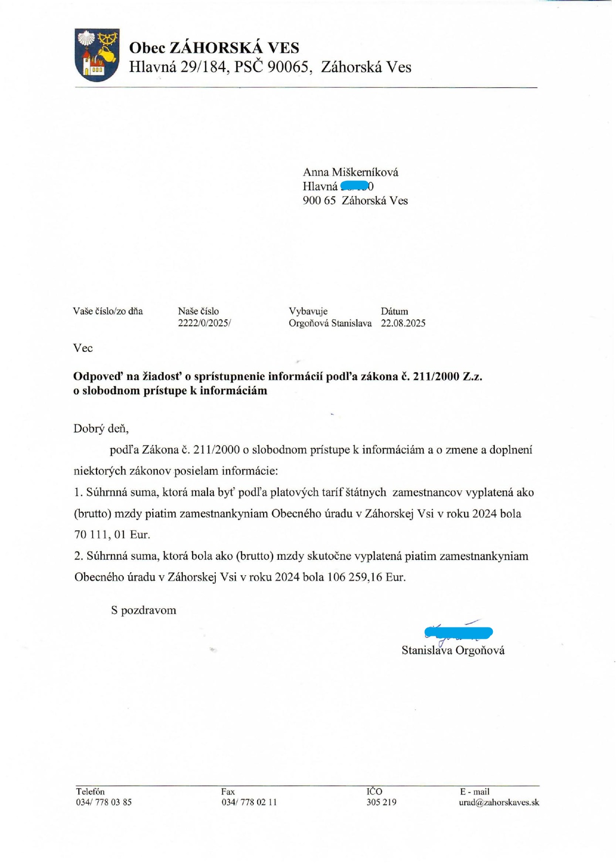 A založila som si novú tradíciu. Ešte v ten istý deň som na obecný úrad poslala žiadosť o informácie - a odvtedy posielam každý pondelok ďalšiu. Prichádzajú mi naozaj pozoruhodné odpovede a zjavne nastal čas, aby to všetko bolo zverejnené.