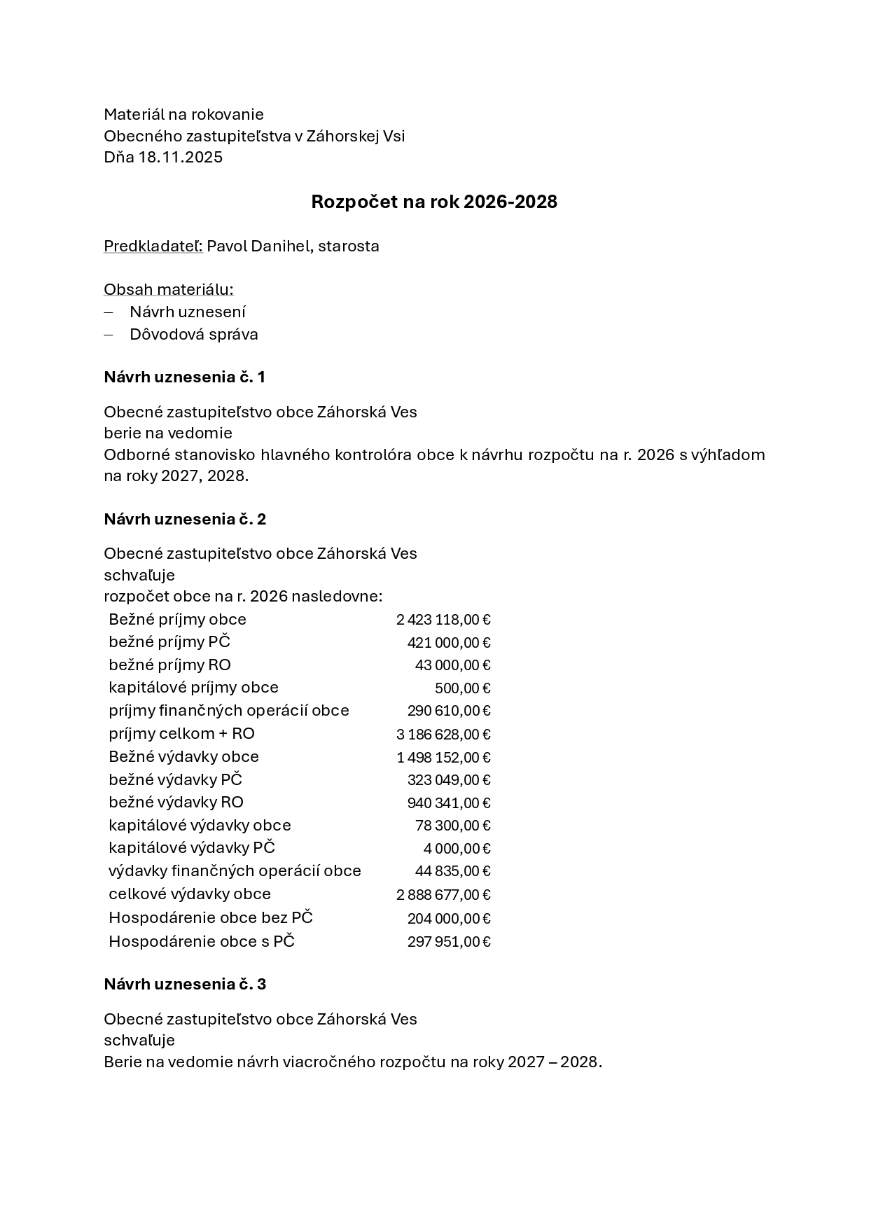 A dôvodová správa., ktorú dostali poslanci pred schvaľovaním o rozpočte na rok 2026 (zasadnutie OZ, ktoré sa konalo 18.11.2025)