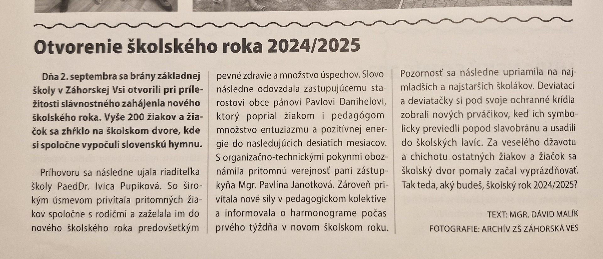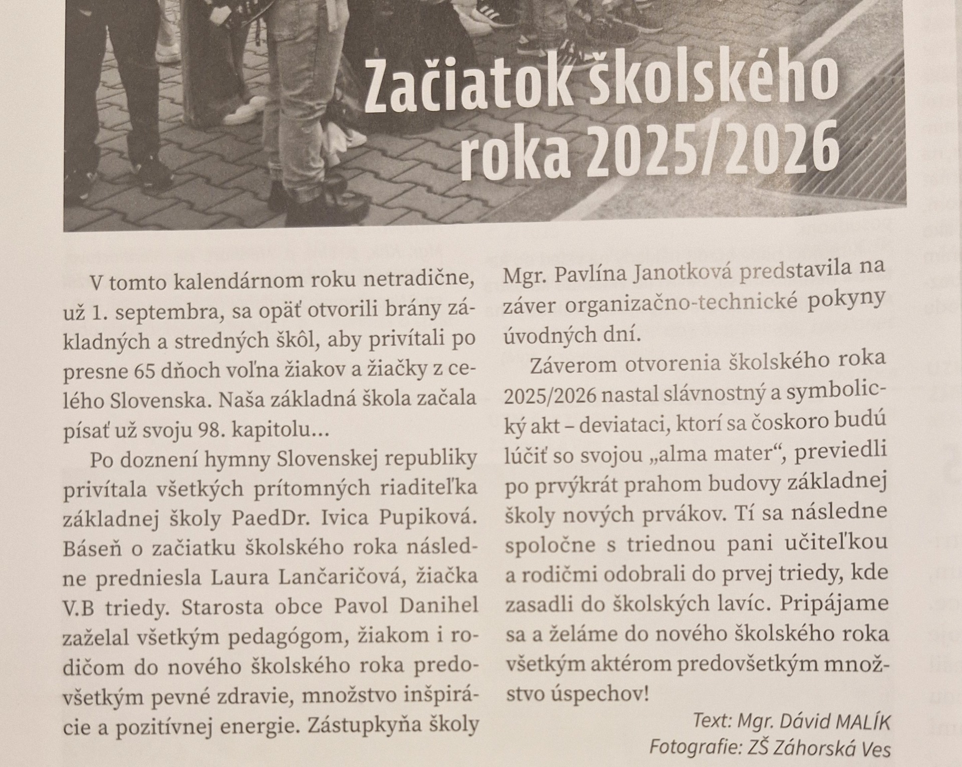 Rubrika Zo zasadnutí obecného zastupiteľstva - miesto zhrnutia podstatného diania na jednotlivých zasadnutiach obecného zastupiteľstva - obsahuje teraz len uznesenia zo zasadnutí z 2.9.2025 a 30.9.2025. Z textu OcÚ sú skopírované aj podpisy starostu pod každým uznesením, takže čitateľ sa dvadsaťpäť krát dozvie, ako sa volá a že je starostom obce. Skopírované sú tiež nadpisy, podľa ktorých sú uznesenia z jedného zasadnutia schválené a z druhého zasadnutia sú len uznesenia.