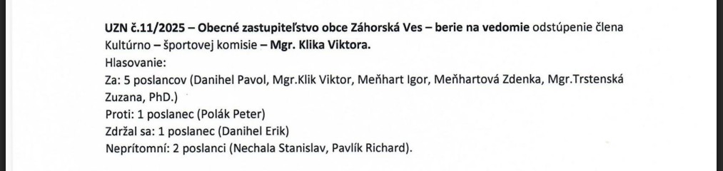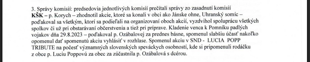 Na zasadnutí obecného zastupiteľstva, ktoré sa konalo 2.9.2025, Pavol Danihel povedal, že veniec k výročiu SNP položil spolu s dvoma pracovníčkami OcÚ už vo štvrtok 28.8., lebo na predĺžený víkend mal rodinné povinnosti.