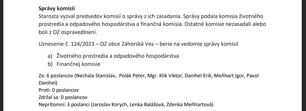Obec na správy komisií zriadila na svojom webe aj samostatný priestor.