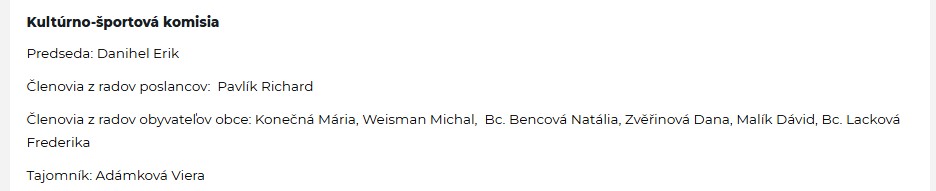 Poďme sa najprv pozrieť, kto je v aktuálnom volebnom období v kultúrno-športovej komisii.