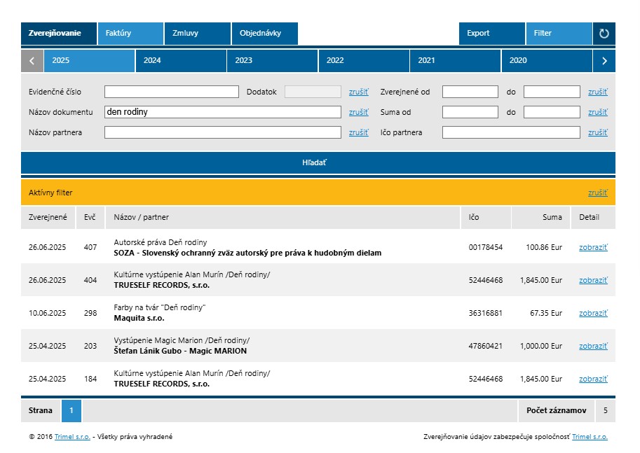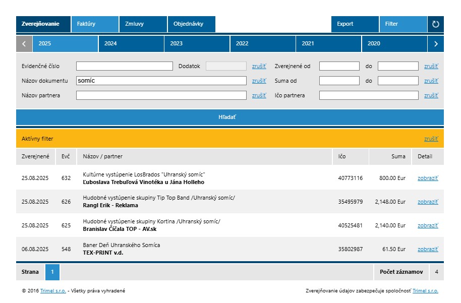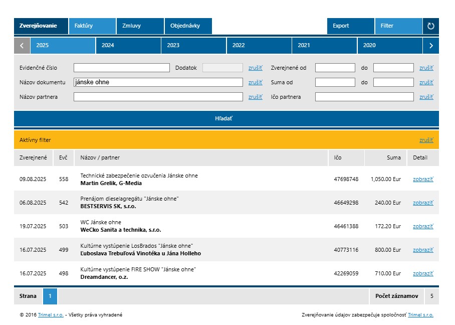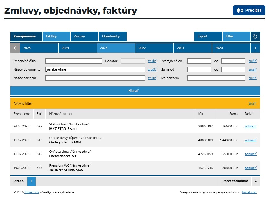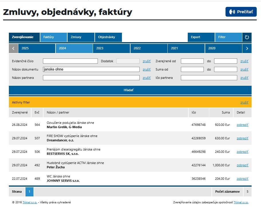 Čiže v roku 2023 obec platila náklady na túto akciu vo výške 576,54 €, v roku 2024 zaplatila 2 340,00 € a v roku 2025 zaplatila 5 149,50 €.