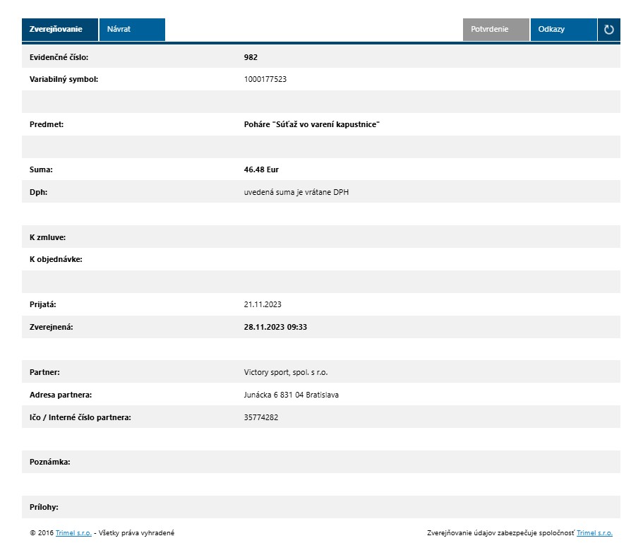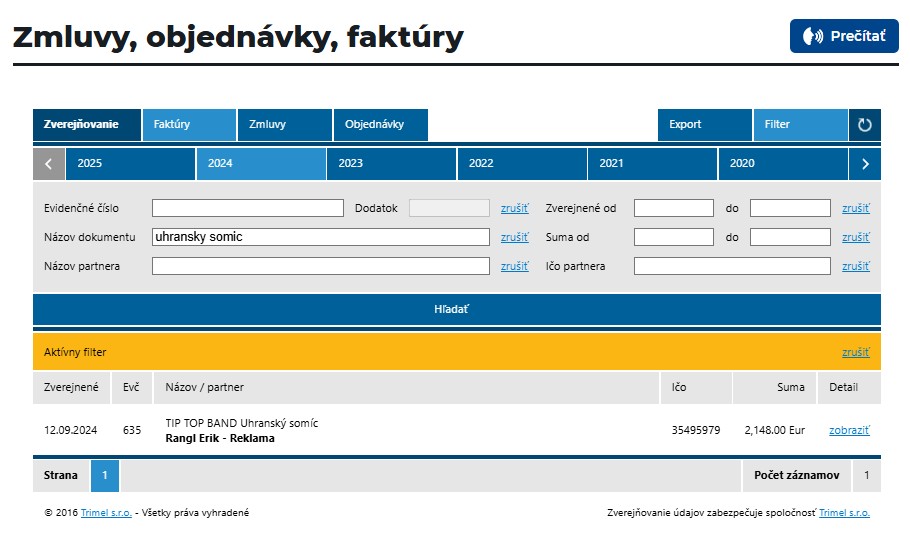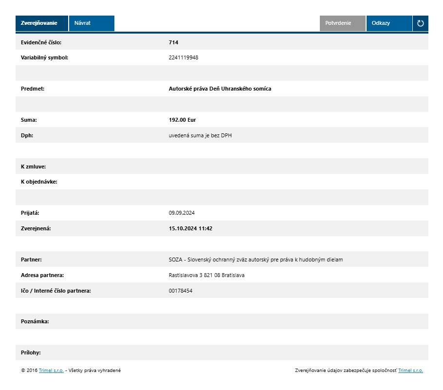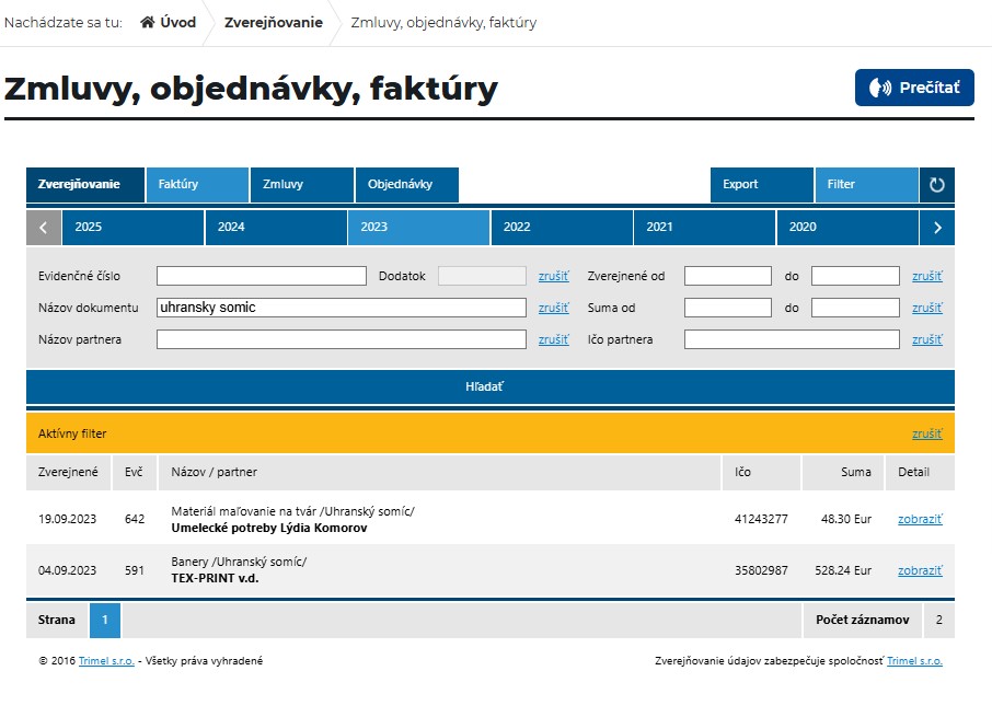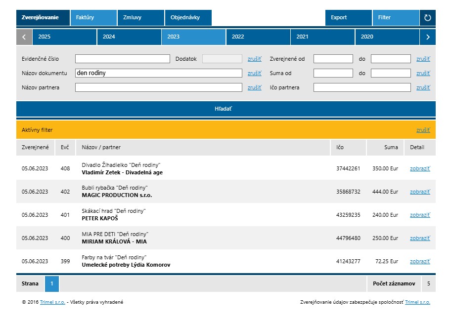 Čiže v roku 2023 obec platila náklady na túto akciu vo výške 576,54 €, v roku 2024 zaplatila 2 340,00 € a v roku 2025 zaplatila 5 149,50 €.