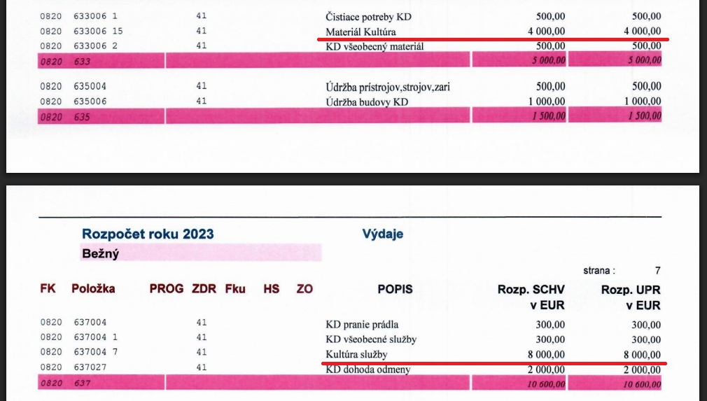 Kultúrno-športová komisia má v obecnom rozpočte svoje dve kolónky.