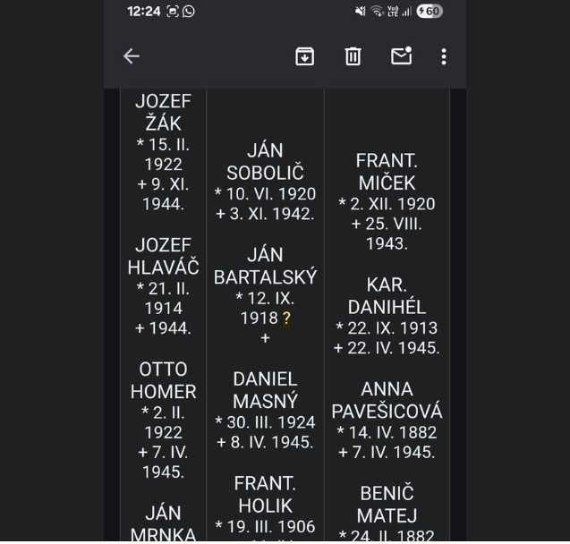 4.4.2025 kladenie vencov k Pomníku padlých - akcia trvala presne päť minút, jednalo sa o 80. výročie oslobodenia obce. Usúdila som, že radšej nebudem písať nutne kritický článok o neúčasti zboru pre občianske záležitosti (načo vlastne máme takú položku v obecnom rozpočte?), tiež detí z MŠ a ZŠ a o neexistencii kultúrneho programu.