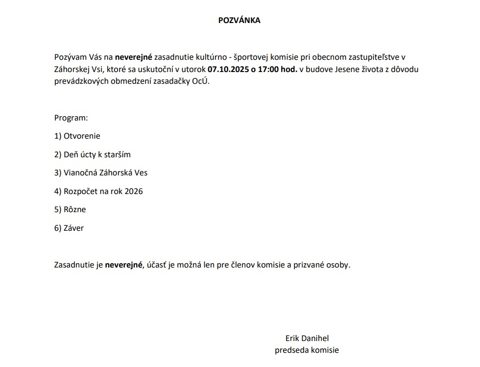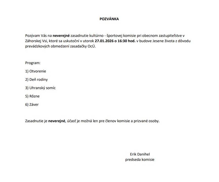 rodiny akosi vypadol zo zoznamu kultúrno-športových akcií na rok 2026. Zrejme to bol omyl, lebo v pozvánke na zasadnutie KŠK