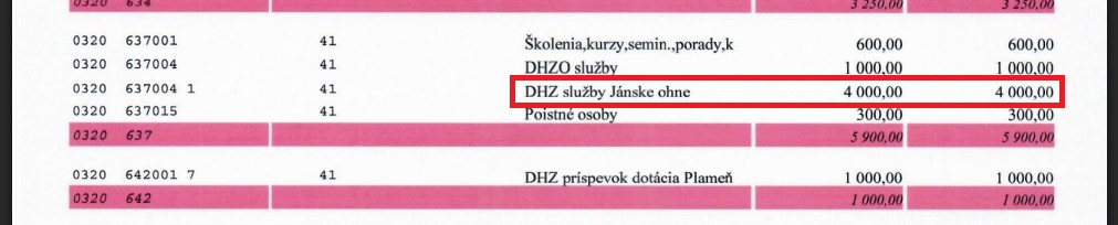 Pridávam tiež rozpočty DHZ a DHZO za roky 2022-2025 - ani raz tam nie je uvedený príspevok na Jánske ohne. Doteraz sa totiž platil z rozpočtových položiek Materiál kultúra a Kultúra služby.