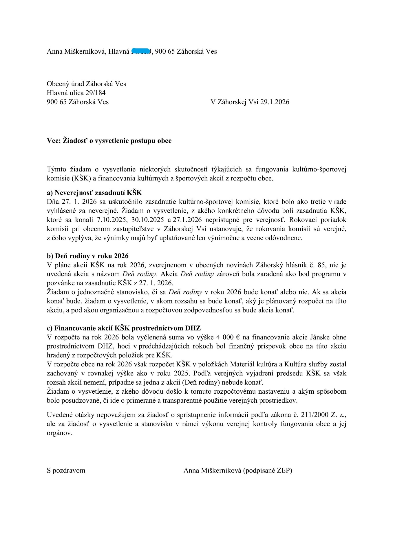 Už som TU písala, že na zasadnutí obecného zastupiteľstva 14. 10. 2025 som sa v