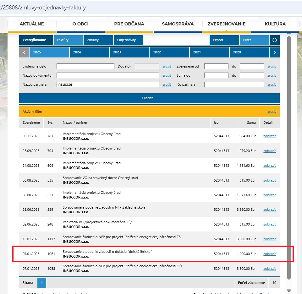 Za vypracovanie projektu a jeho podanie sme zaplatili firme INSUCCOR s.r.o., na tom sa zrejme šetriť nemusí (ale o tom tiež inokedy).