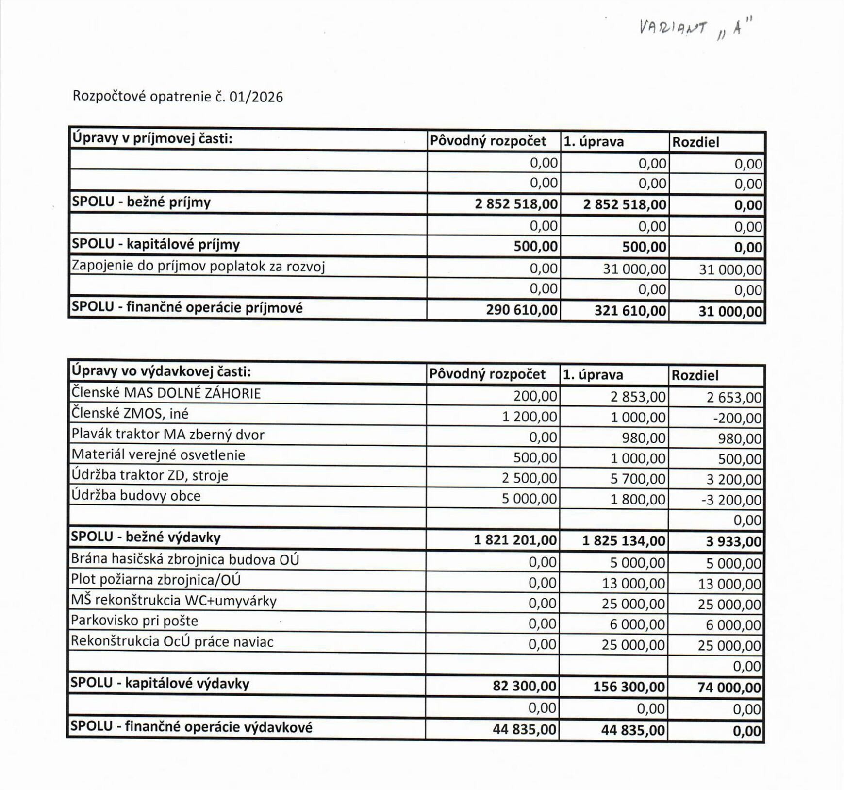 Podľa rozpočtového opatrenia č. 1/2026, ktoré poslanci schválili na zasadnutí