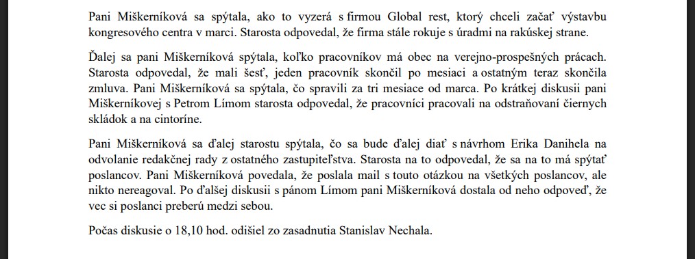 Annušová, Mgr. Viktor Klik a Igor Meňhart) boli ospravedlnení. Starosta