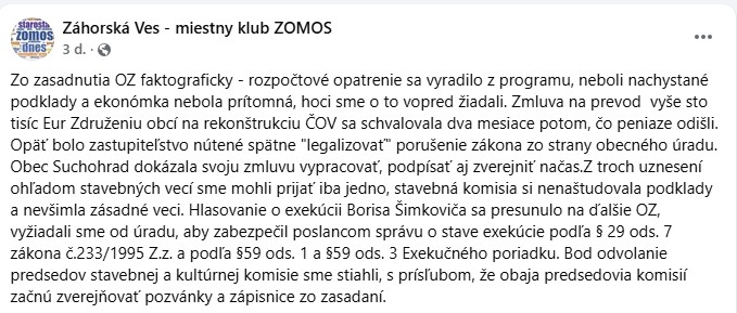 Pre tých, ktorí nemajú čas pozerať alebo čítať dlhý text, ultrakrátke zhrnutie od predsedníčky miestneho klubu ZOMOS Zdenky Meňhartovej.