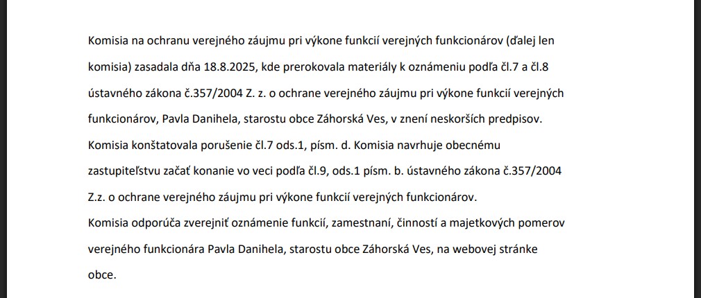 * Pavol Danihel neposkytol včas materiály k Oznámeniu funkcií, zamestnaní, činností a majetkových pomerov verejného funcionára