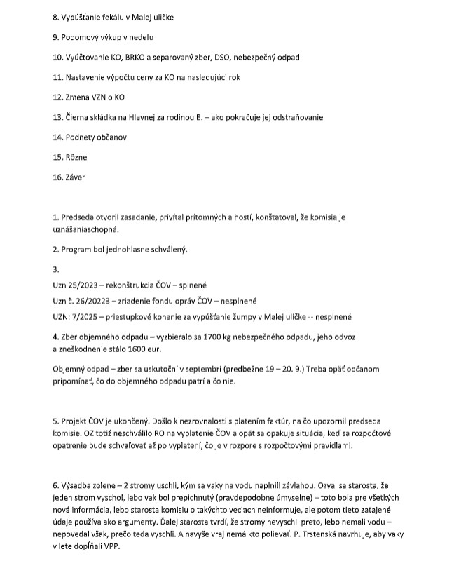 Odporúčam si tiež vypočuť správu stavebnej komisie, ktorú prečítal jej predseda Richard Pavlík (v zázname od 19,30), v súvislosti s neskôr preberanými bodmi.